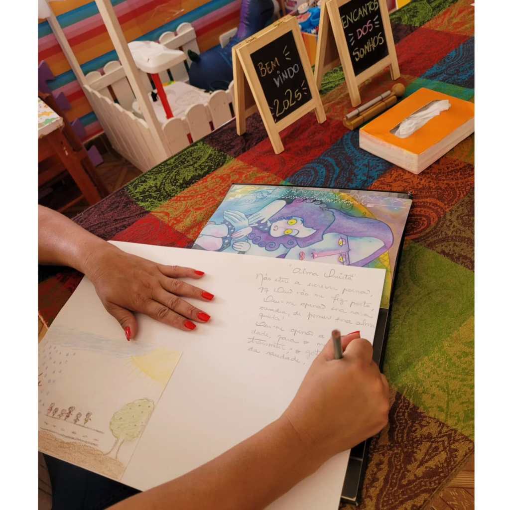 Para este primeiro encontro do ano, tivemos um momento de noticiário, movimentamos o corpo, seguimos com uma contação de história e de uma atividade de produção plástica. Foi um encontro bonito que tratou dos sonhos para 2025 e em suas muitas formas de realizações!