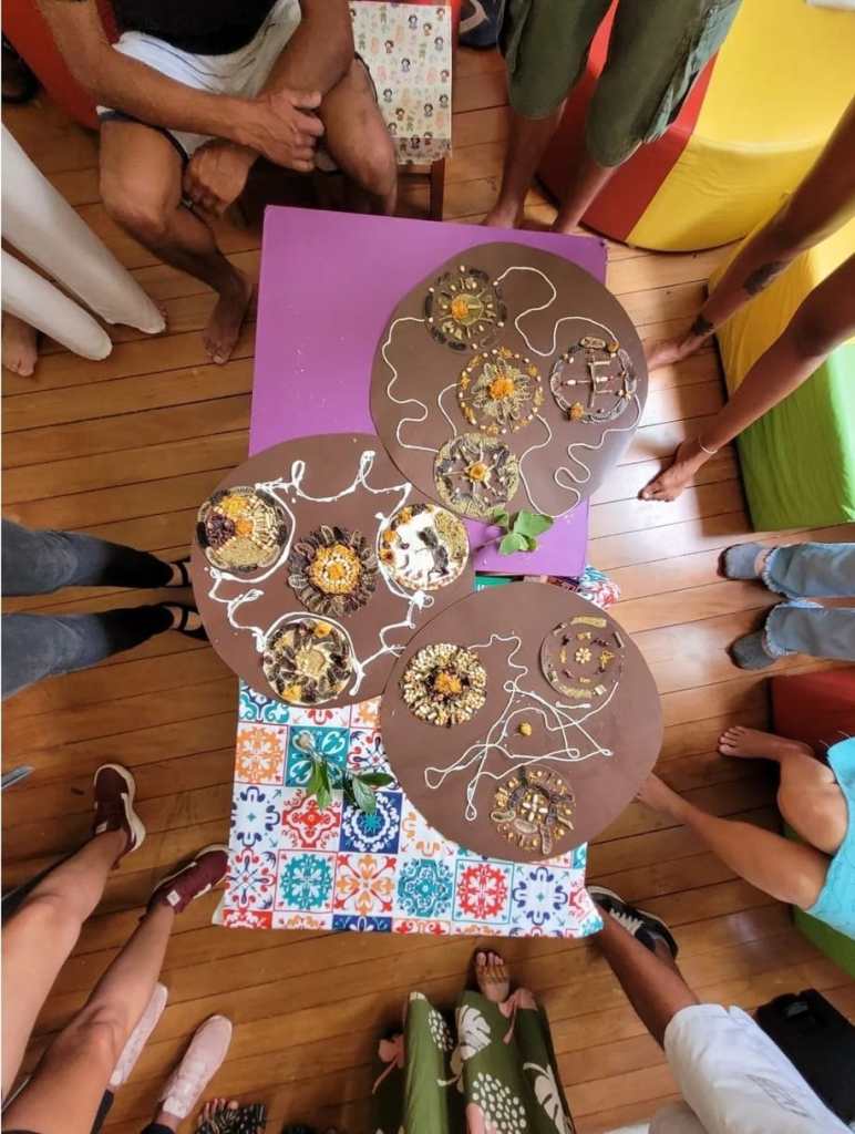 Para isso, é ofertado um trabalho arteterapêutico que busque, por suas proposições criativas e expressivas, promover encontros de qualidade, intra e inter relacional, que reflitam sobre a ciclicidade na vida e, por reflexo, na rotina laboral.